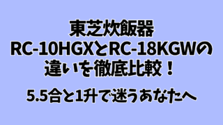 キッチン家電 東芝炊飯器RC-10HGXとRC-18KGWの違いを徹底比較!5.5合と1升で迷うあなたへ 1. はじめに炊飯器を選ぶときに「5.5合炊き」と「1升炊き」で迷う方は多いですよね。家族の人数やライフスタイルによって、ちょうどいい容量は変わってきます。この記事では、東芝の人気モデル RC-10HGX(5.5合炊き) と RC-18KG... キッチン家電